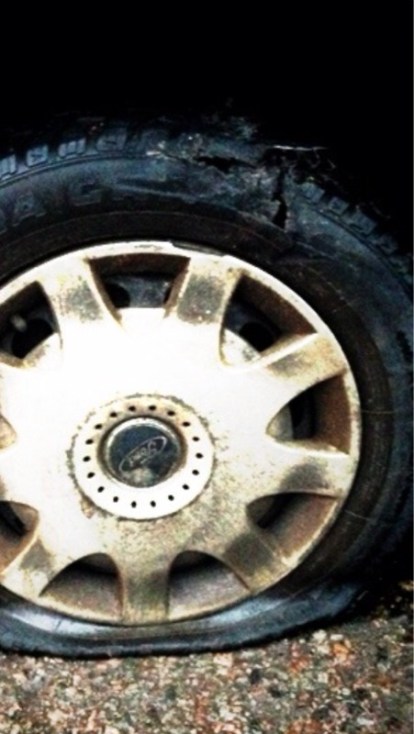 Igår hade hjulet på horan låst sig då färden gick mot ishallen. Då bara tre hjul snurrar så sladdar man bra och till sist slår det flammor från hjulet och det exploderar. Poff. Jag har inte sett det själv men jag har hört att det går till så.