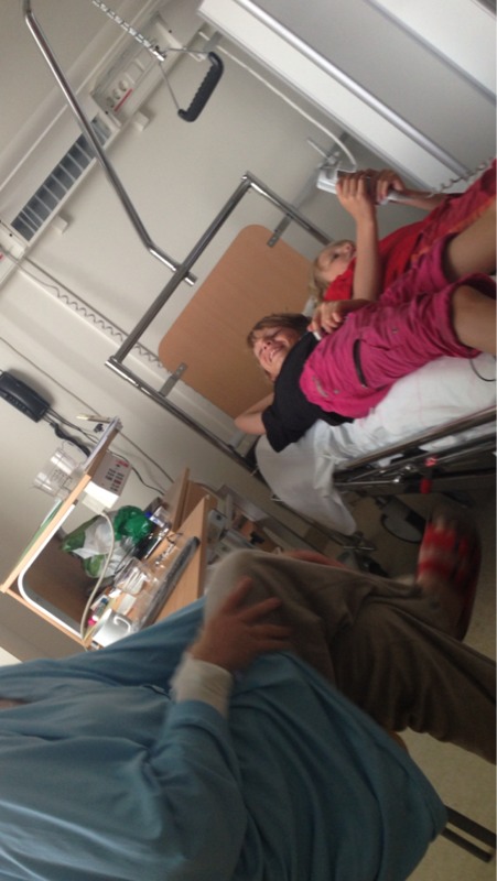 Idag har vi hälsat på momman på sjukan. Hon mår bättre nu och orkade sitta på en stol. Anton och Wilmer lånade sängen under tiden.