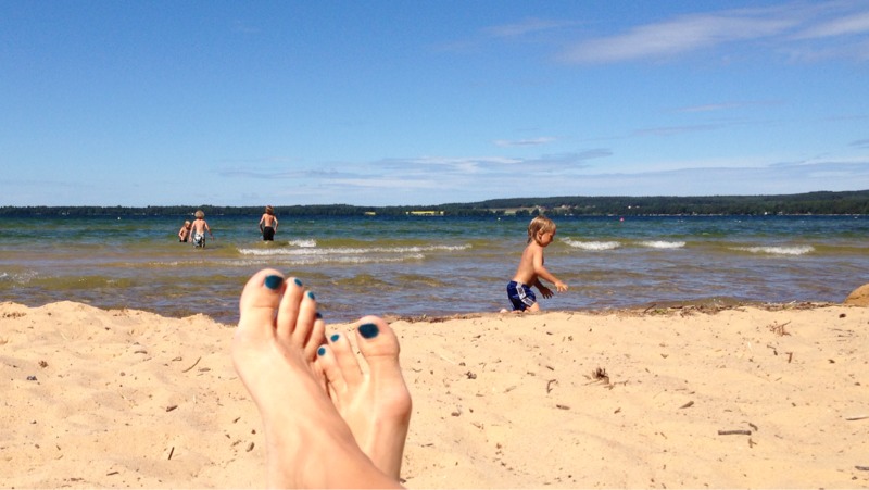 Idag har vi varit i Motala och badat. Det var mest kallt och blåsigt. Jag bräde röven. Grillad skinka.