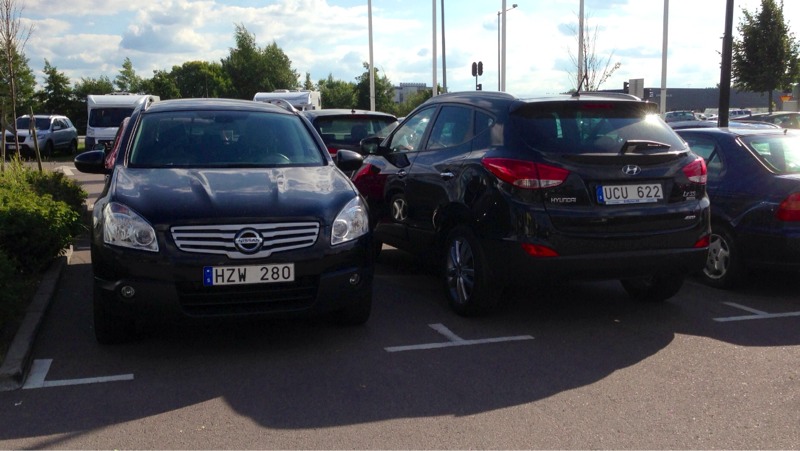 Nu har jag fått låna en bil som jag knappt lyckades att ta mig från parkeringen med först. Startas med en knapp och jag är inte helt van vid automatlåda. Det är dock ett jävla drag i den.