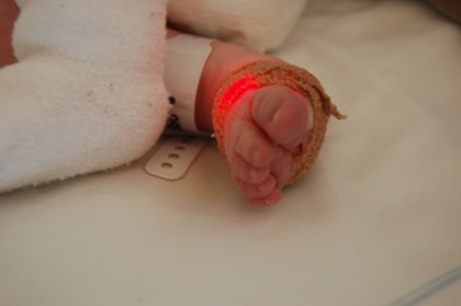 Bilden ovan föreställer Didriks fot. Han var alldeles nyfödd vid tillfället bilden togs. Han och jag hade legat på neonalintensiven men blivit utsläppta till eget rum. Det var några omvälvande dagar där… i början av Didriks jordeliv. Läs mer här (del 3, men de andra delarna finns publicerade på anslutande datum). Tur att han mår bra nu 🙂
