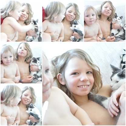 Anton, Didrik och Kissen Laban idag på morgonen