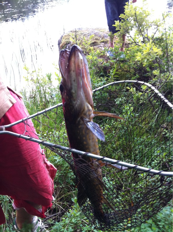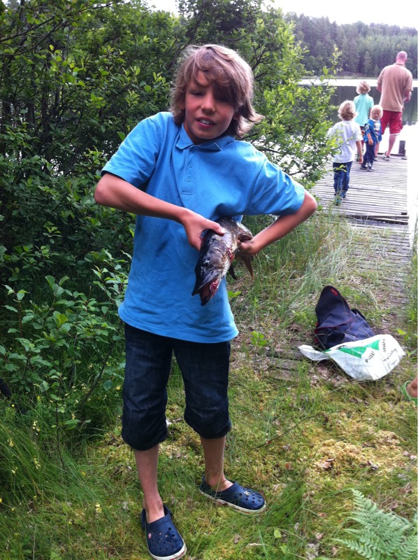 Men Anton drog upp en gädda med sitt kastspö. Den rackars ungen verkar vara född med fiskelycka. Han åt nästan hela sin gädda själv till kvällsmat nu ikväll.