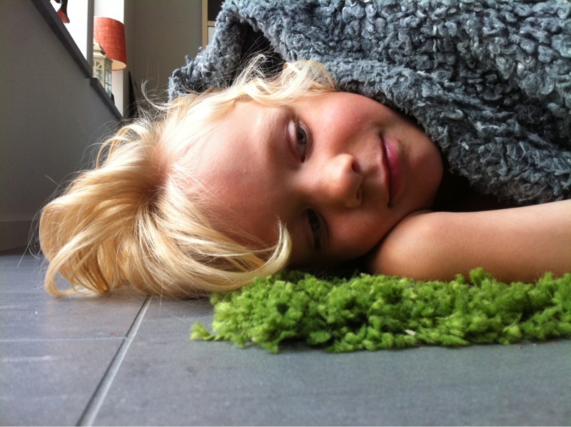 Mamma är hemma från sjukan. Ossian undrade om hon är pigg nu och inte bara ligger i sängen. Eller som då han var där hemma och hälsade förra måndagen då ”hons hår var sådär huller om buller”.