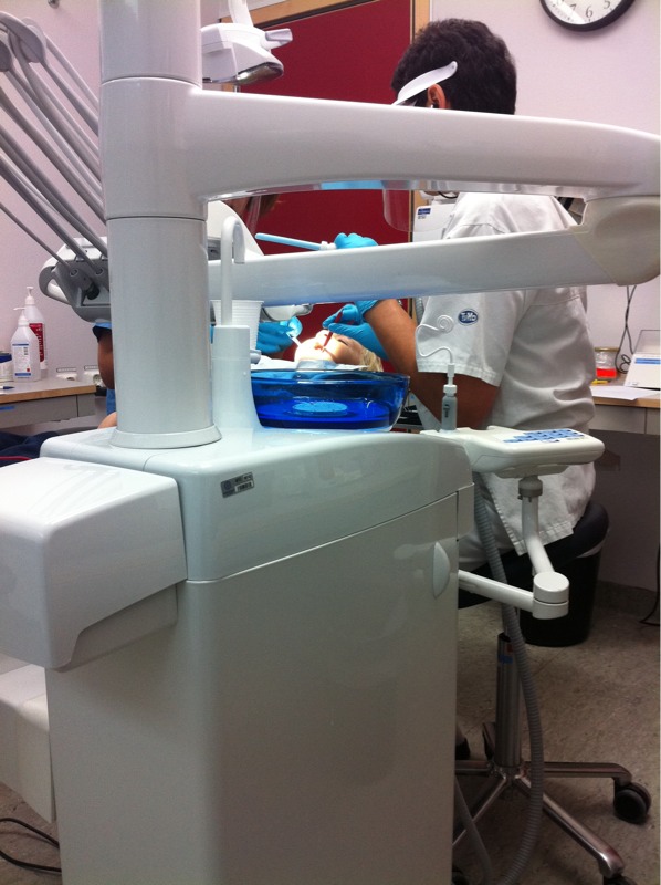 Det blev ett lite mer omfattande tandjobb än vad jag hade räknat med. Hål mellan två tänder och i ena tanden var det nära nerven. Mjölktänder såklart. Bedövningsspruta vid käkleden. Borr. Matris på två tänder.