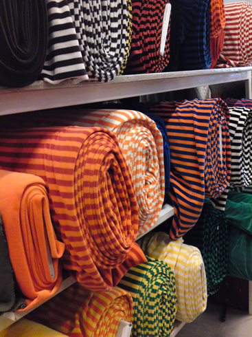 Hon tyckte att han behövde en större mössa. Så hon sydde en. Tyget är en trikå med ett återupplivat gammalt mönster från den nedlagda klädtillverkaren Fix. Från början var det klargult med vita elefanter på men nu är det färgat med brun textilfärg. Tack säger Didrik. Och hans mamma som slipper gå till klädaffen.