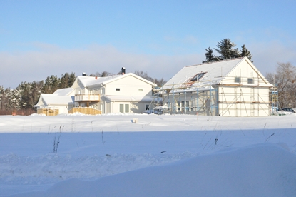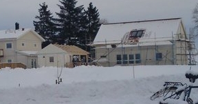 Tog en sväng upp till vårt husbygge eftersom jag trodde att vår carport skulle komma idag trodde jag. Det visade sig vara i morgon som det skulle komma. Jag pratade lite med en av snickarna som meddelade att han hade ägnat en hel arbetsdag åt att skotta snö igår för att carporten skulle kunna få plats. Jag tror att det är en massa dörrar och lister som ska komma i morgon också vilket jag trodde att snickaren också hade koll på. Det visade sig att han inte visste om det och blev lite sne 😉