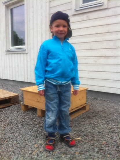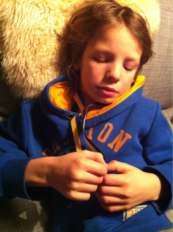 Ossian är fortfarande lite sjuk. Upp och ner som en jojo. Han ska vara hemma i morgon också och får följa till jobbet på förmiddagen och vara med mormor sedan. Så pass pigg är han.