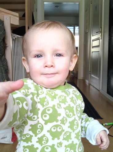 Det är en väldig aktivitet nu. I torsdags trillade han och slog bakhuvdet i golvet så vi fick ringa och prata med 1177. Han käkar det mesta, går vingligt men mestadels, och trivs bra hos dagmamman där han hittills gått halvdagar.