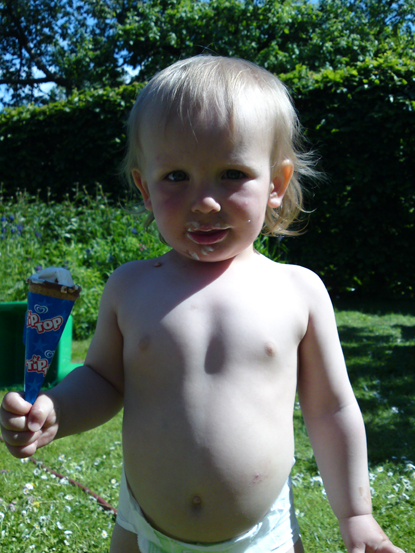 Bilden är tagen den femte augusti på hans tjugotremånadersdag. Han har mat i hela huvudet men lika söt är han i alla fall.