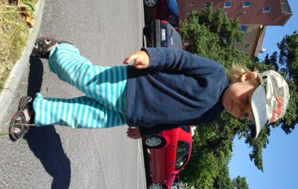 I går kväll klättrade han äntligen ner för trappan från övervåningen istället för att stå där och tjata och skrika tills man kommer och lyfter ner honom. Han har länge kunnat backa ner från stolen och soffan och så, men inte vågat sig på trappan. Men nu så 🙂