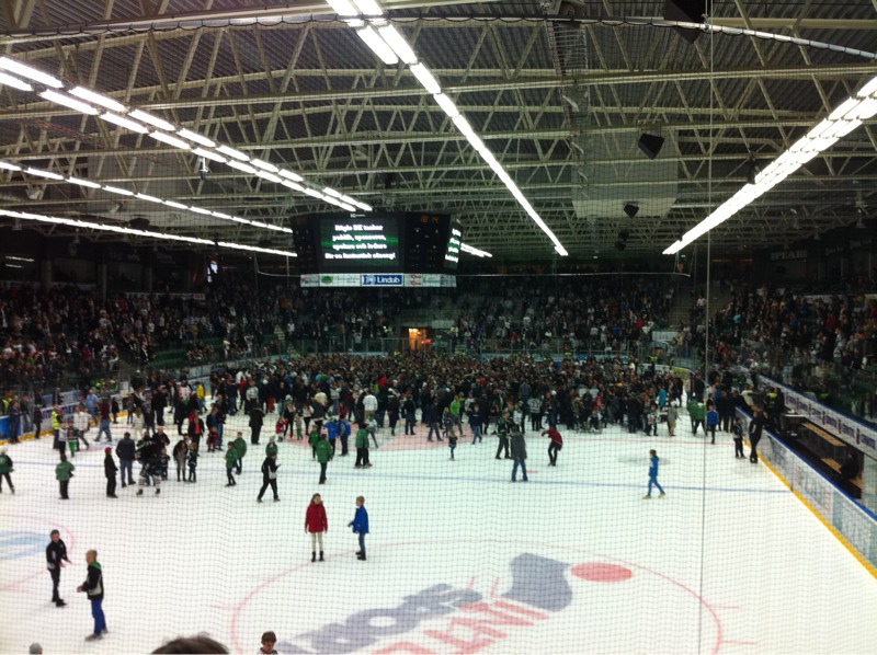 Vi har varit i Ängelholm och kollat på hockey. Vi och 5046 personer till. Fredrik skulle ha åkt med direktören men direktören tyckte inte att det var så kul då det redan var klart för lagen inför nästa säsong så jag fick hans biljett. Fredrik fick frågan i biljettkön ifall han var där för att köpa spelare då han sa namnet som vårt biljettkuvert var märkt med.