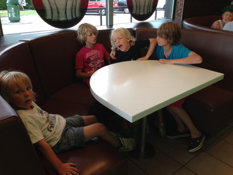 Anton och Fredrik är på Visingsö med fotbollslaget och Didrik har tyvärr kräkts inatt igen så han är kvar hos mormor.