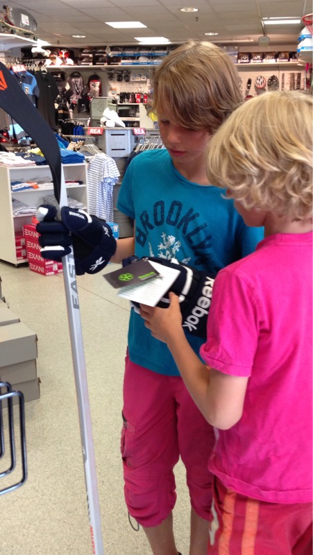 Sedan var vi på sportaffären och köpte pingponggrejer.