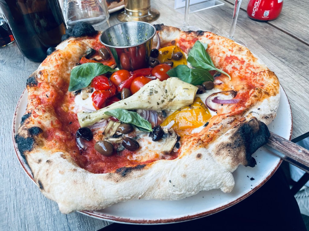 Det är en pizza på bilden. Den är nygräddad. Det är ost på den. Och tomat, lök, kronärtskocka, några skumma svampar och lite annat skit. Spelar roll. Det viktiga är att det är en pizza. Inget annat. Ni fattar ju.