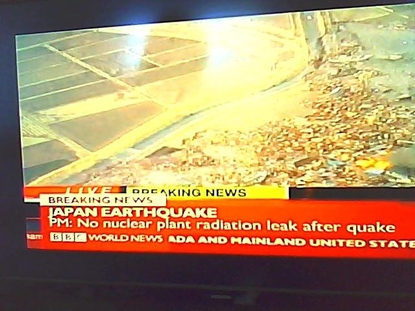 Förutom att hänga med barnen på fredagmorgonen så följer jag det här. Väldigt otäcka bilder på teve. Nu kan man se tsunamin träffa stranden just i detta nu. Och då bryter fyran fär reklam. Byter genast till BBC World News..