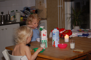 Klockan är ca sju och barnen äter frukost (utom Anton som sitter på toa med magknip).