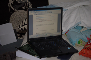 Klockan halv tolv jobbar jag fortfarande med logistikuppgift nummer två. Äter chips gör jag också. Chokladkakan syns inte på bilden (är den uppäten?).